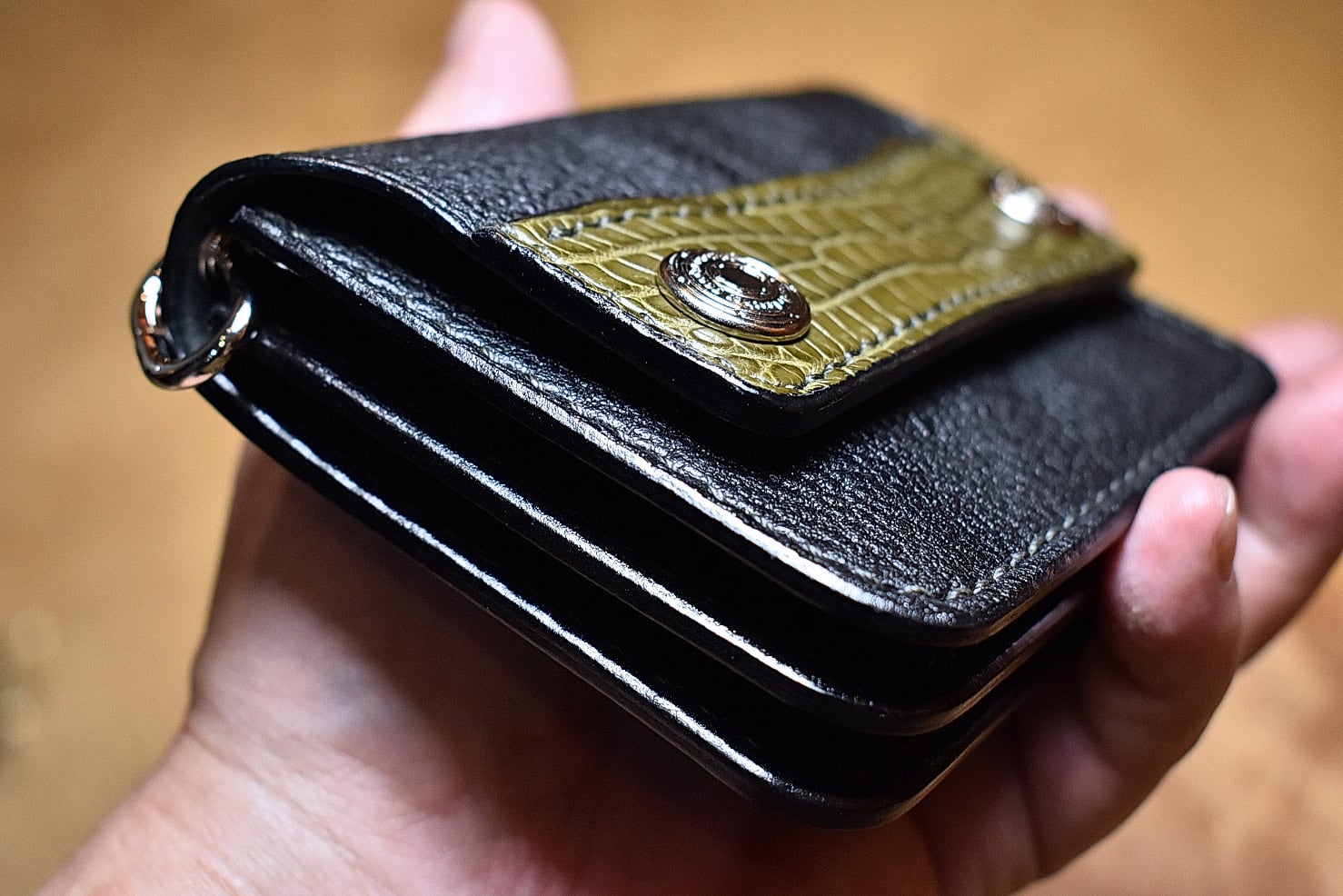 トラッカーウォレットS シボ革×スモールクロコダイル(オリーブカーキ)
