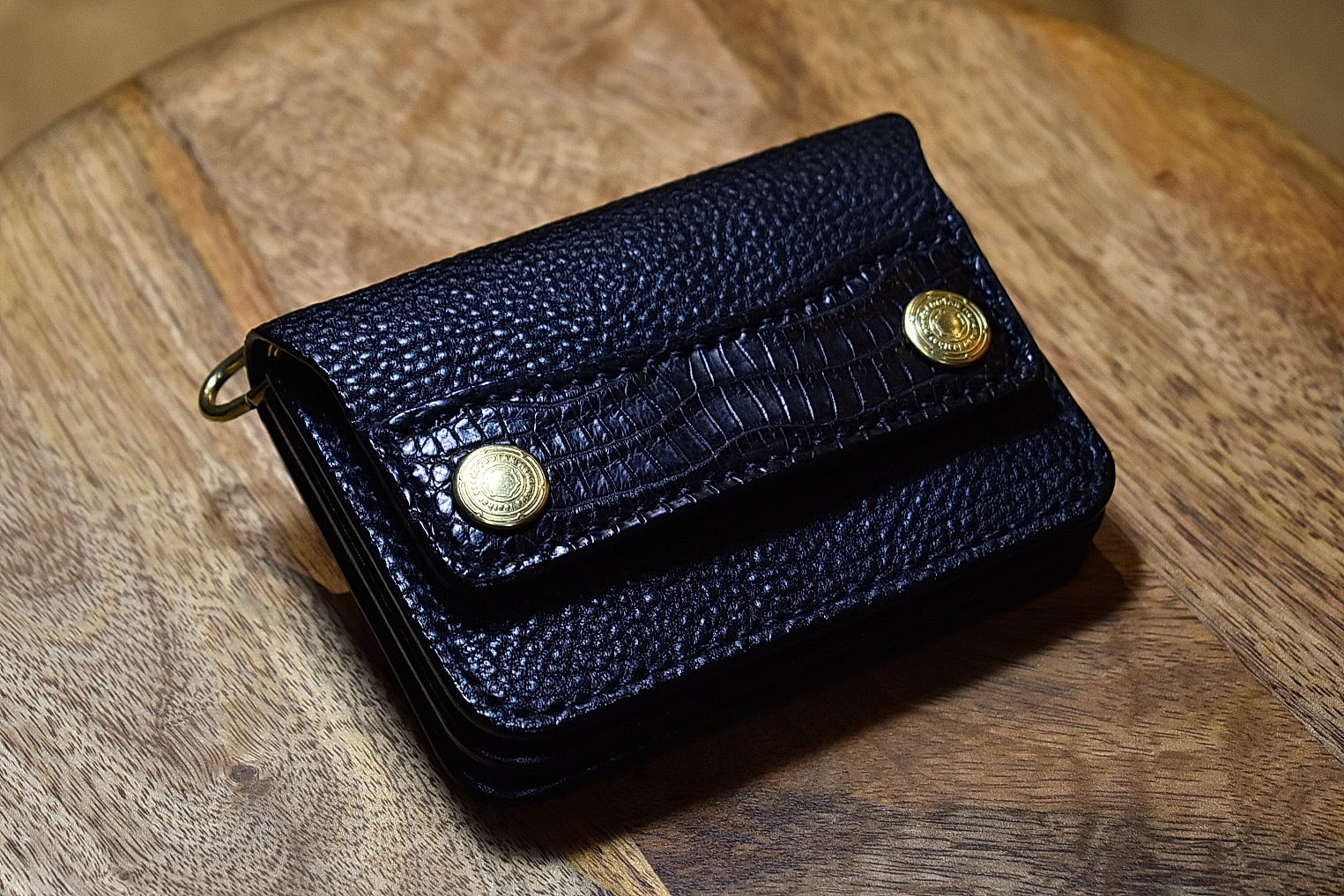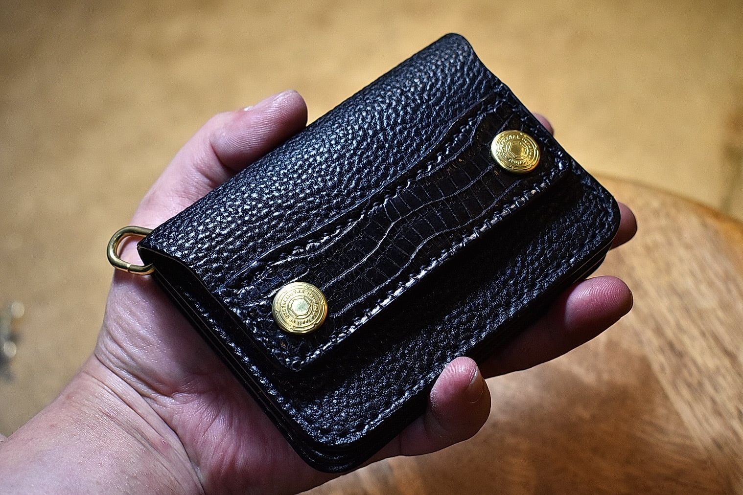 トラッカーウォレットS シボ革×スモールクロコダイル(ブラック)