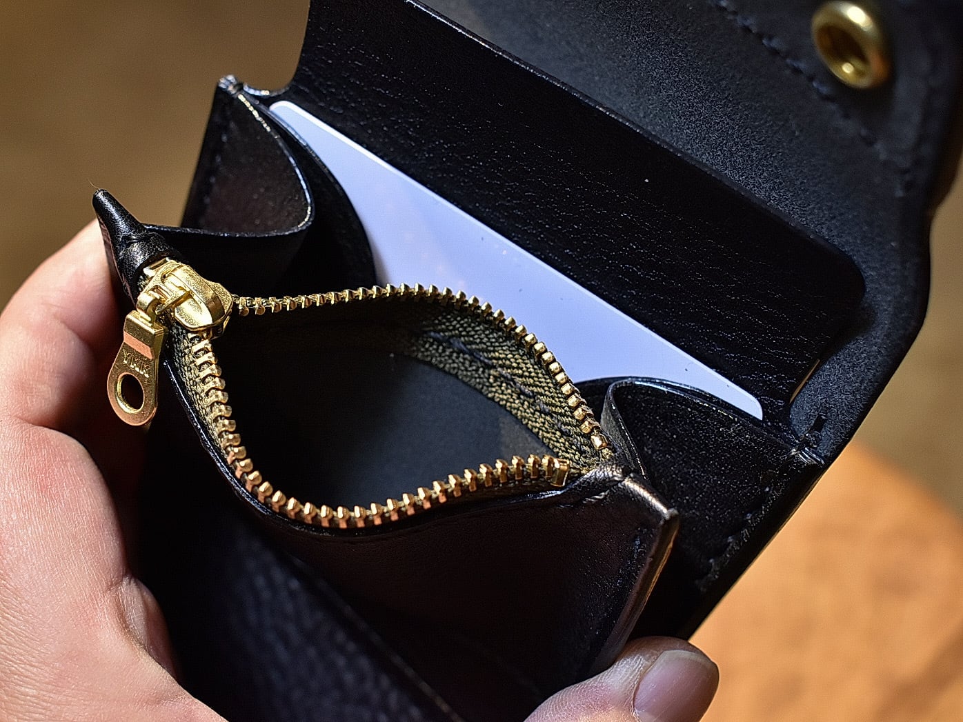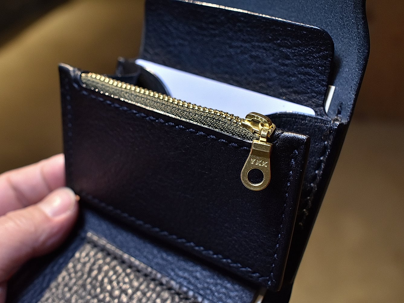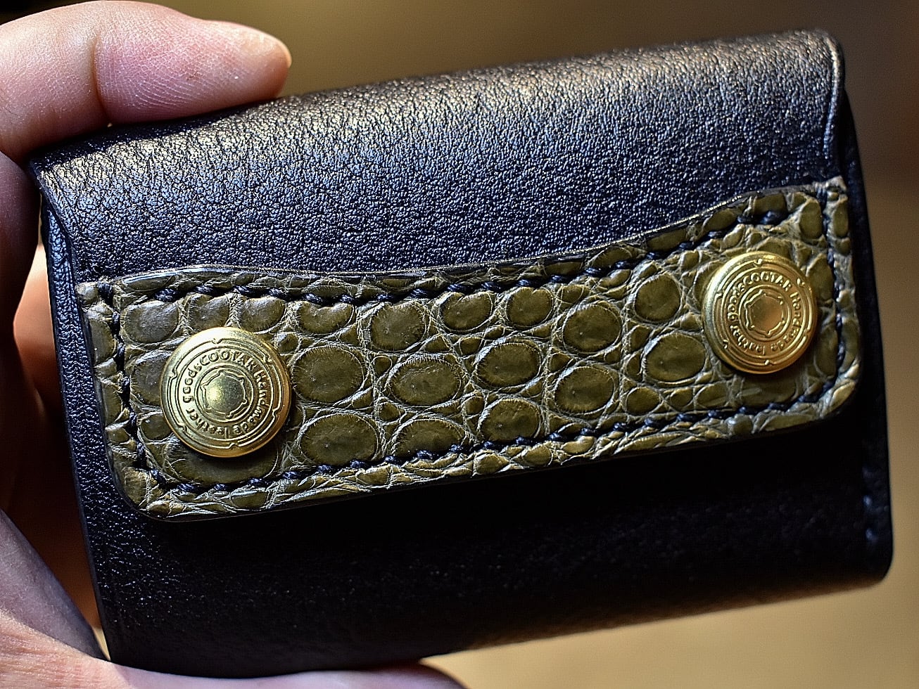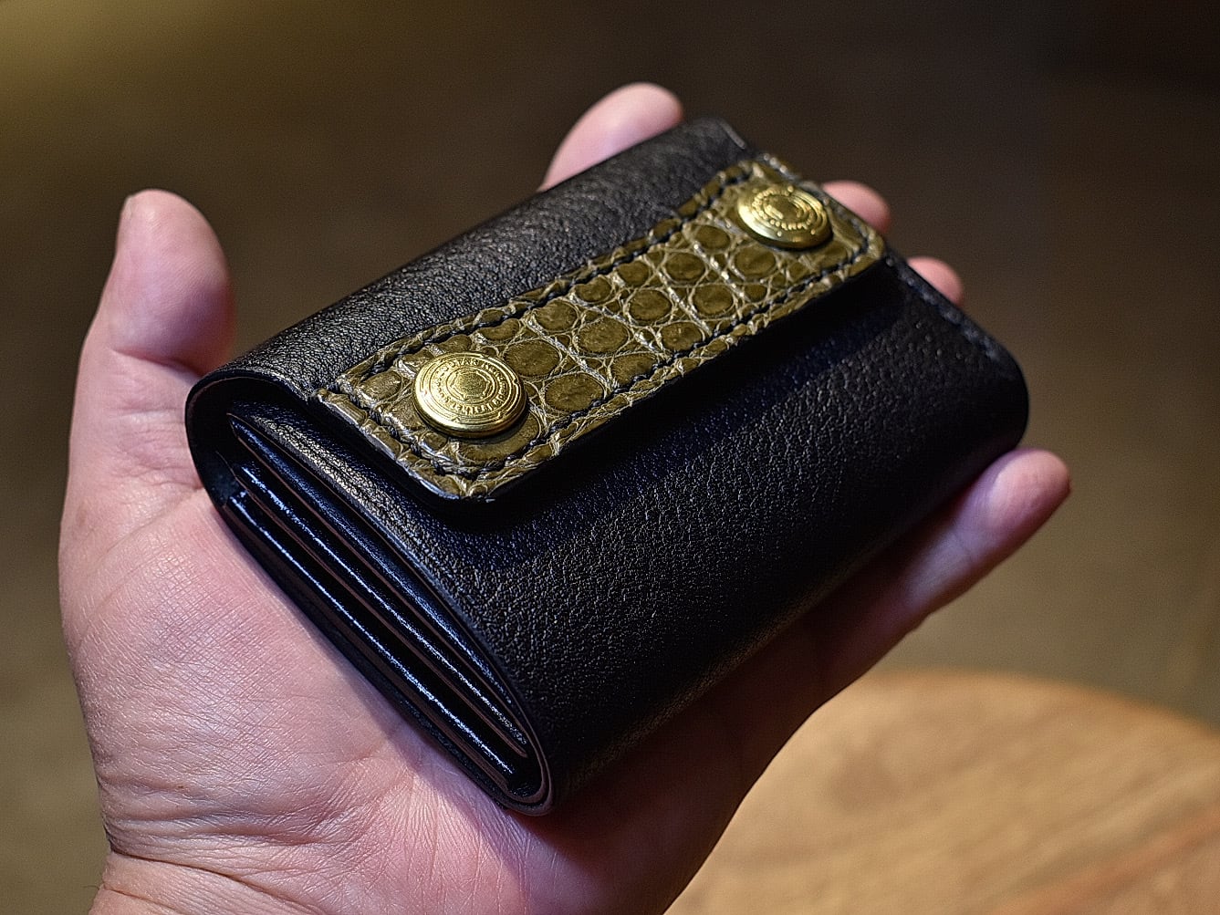 トラッカーミニミニウォレット シボ×スモールクロコダイル(オリーブ)